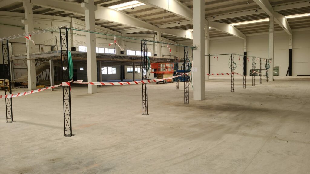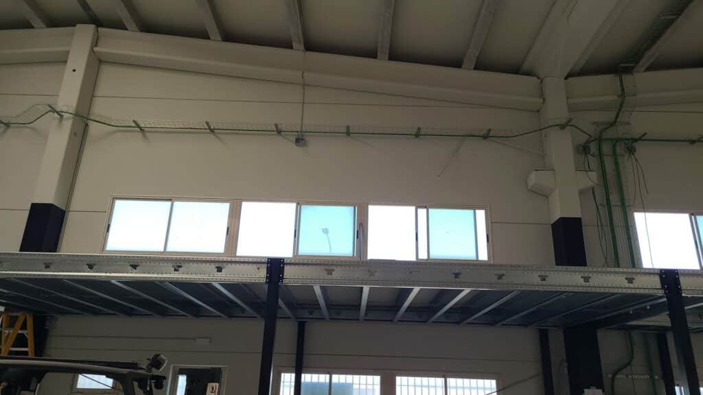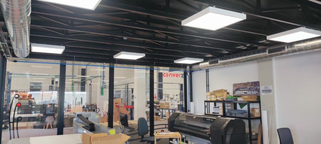 Comenzamos realizando una instalación de Rejiband rodeando la nave y las líneas generales de iluminación y subcuadros