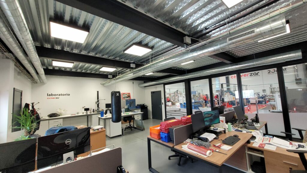 También realizamos Instalaciones Eléctricas para la Industria. Comenzando desde cero. En este ejemplo vamos a crear la instalación para la ampliación de la empresa Converzar. Haciendo un trabajo integral en las líneas de producción, almacenaje y oficinas.